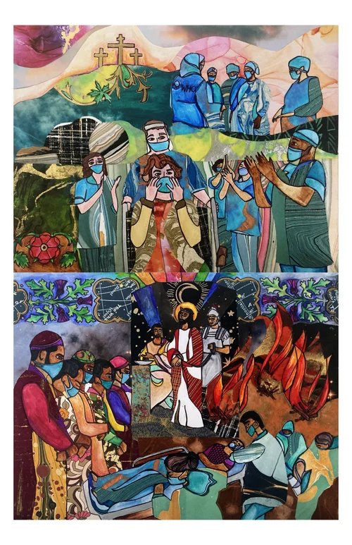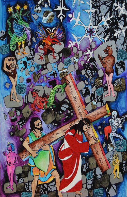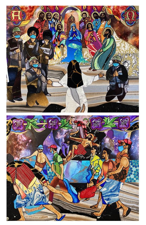 Illustrations of these seven things are paired with the seven last words of Jesus Christ. Each is surrounded by lace patterns, inspired by shrouds and funeral palls, intimate and handmade objects that are an outpouring of communal love in times of grief. These patterns are an invitation to dwell in prayer.